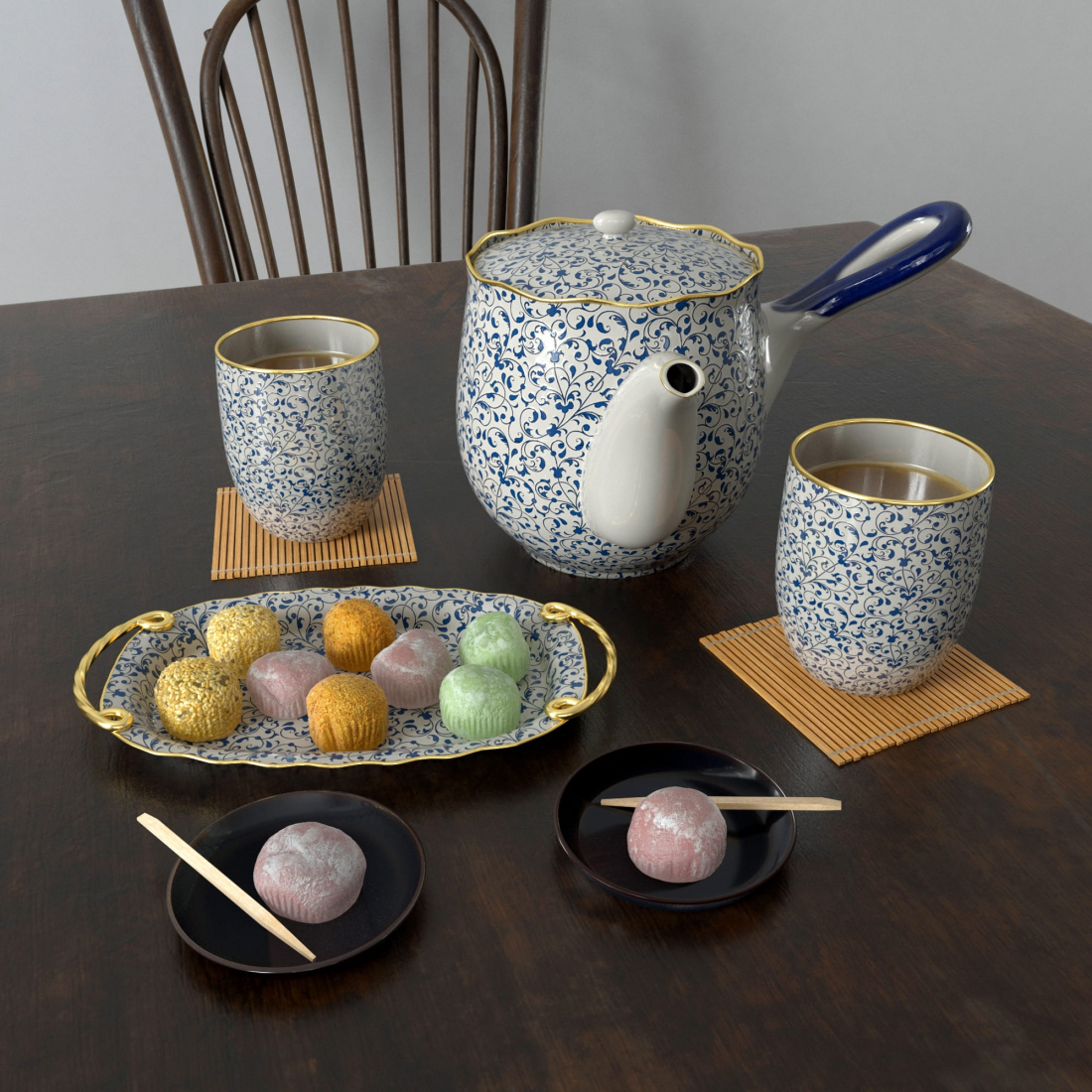 One set of high quality 3d-scanned food, tableware and cutlery models. It was made with the highest attention to details and can be rendered in close-ups. All objects are ready to use and are perfect for kitchen, restaurant and bar interiors.